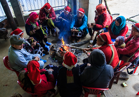 Người dân Sa Pa và du khách cùng quây quần bên đống lửa tránh rét.
