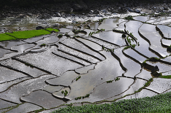Ruộng bậc thang vào mùa nước đổ như một bức tranh sơn mài.