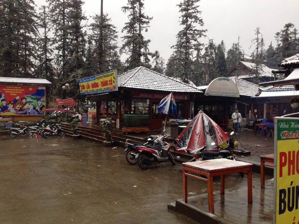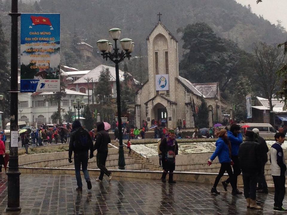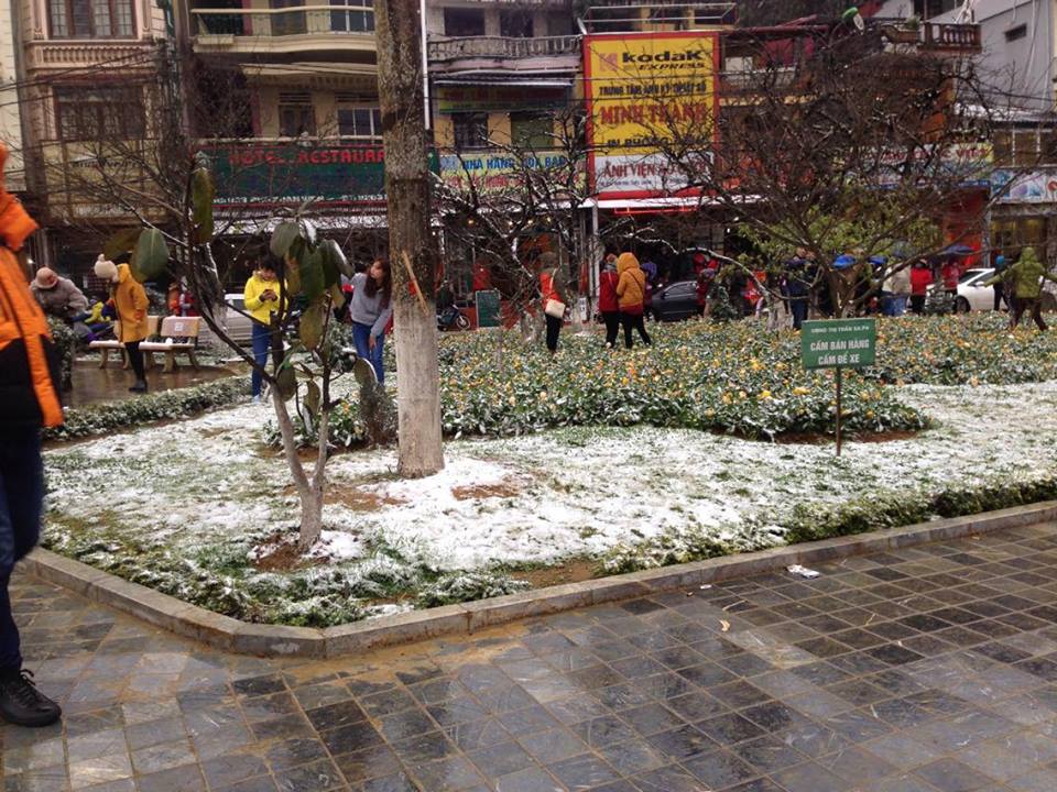 Vào khoảng 1h đêm ngày 24-1-2016 tuyết đã rơi phủ kín thị trấn Sa Pa. Rất đông du khách đã đến tham quan và thưởng thức vẻ đẹp, chụp ảnh của cái lạnh tê tái nơi đây.